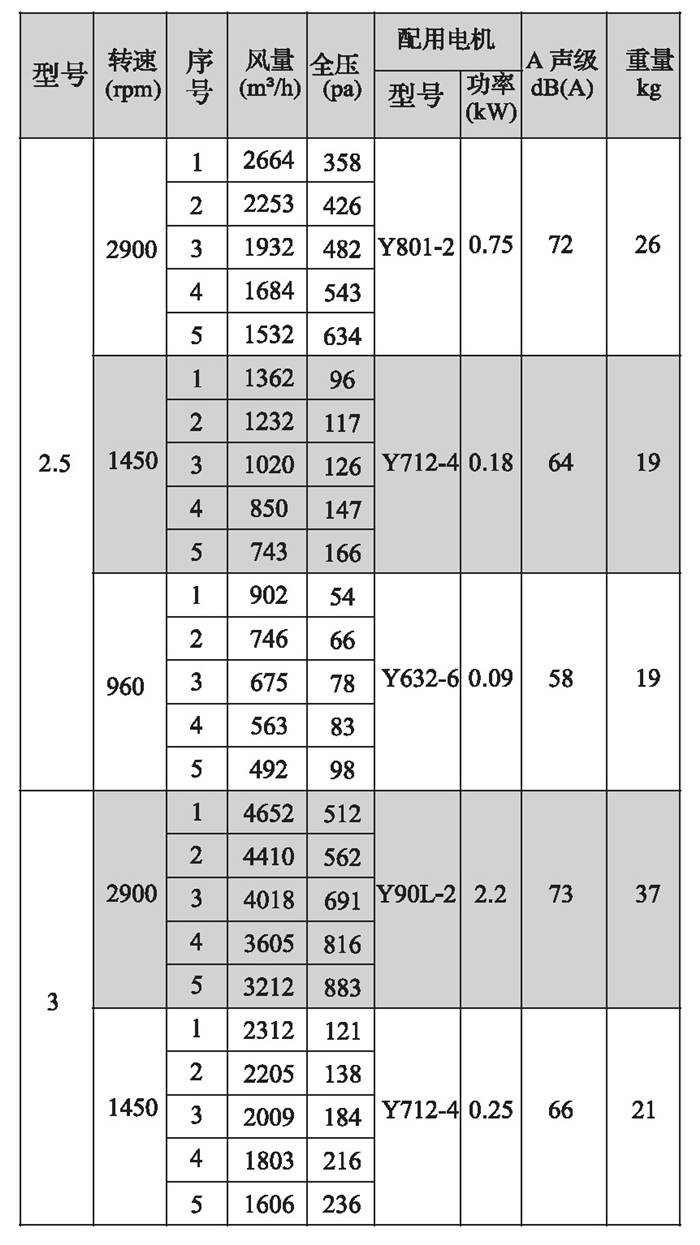 SWF-II系列混流式風(fēng)機性能參數(shù)(1)