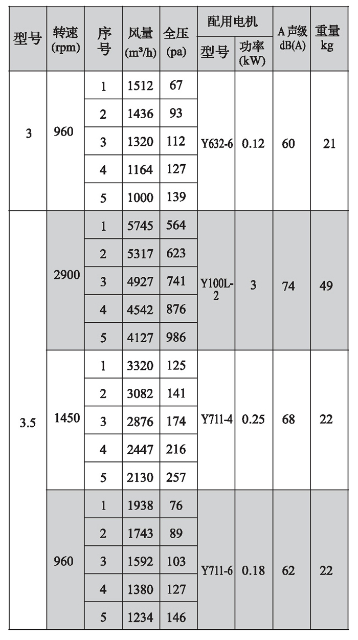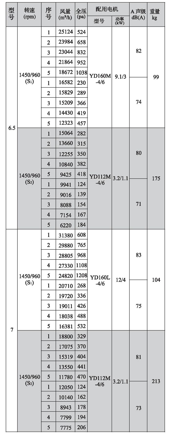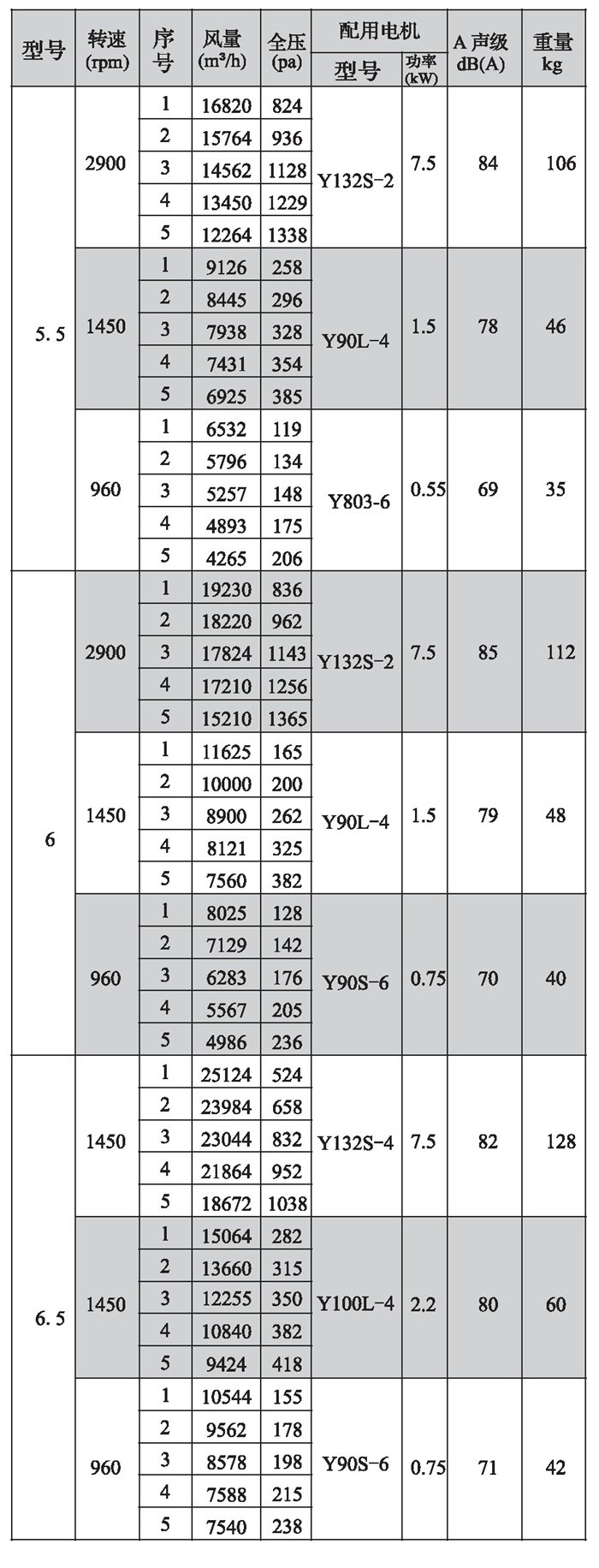 SWF-I系列混流式風(fēng)機性能參數(shù)(1)