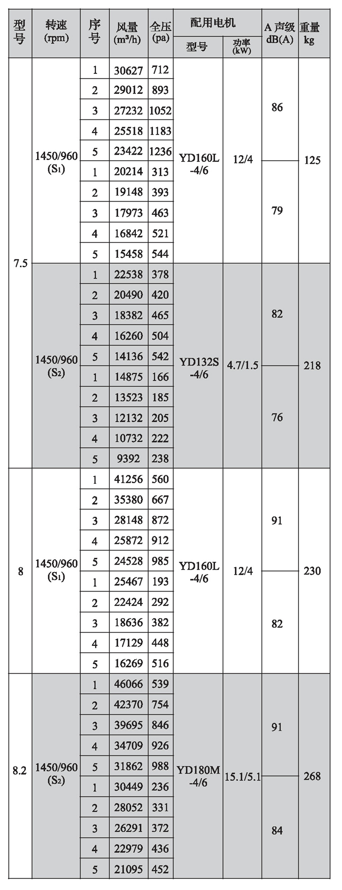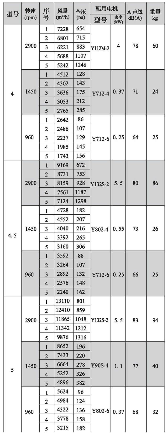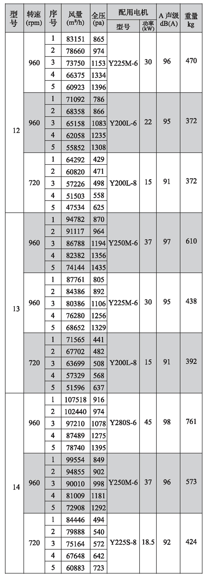 SWF-I系列混流式風(fēng)機性能參數(shù)(4)
