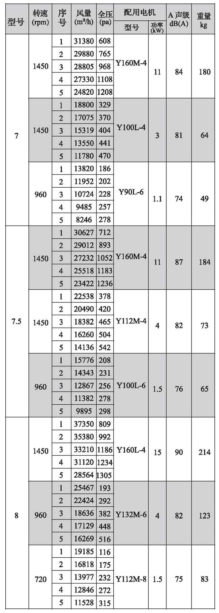 SWF-I系列混流式風(fēng)機性能參數(shù)(3)