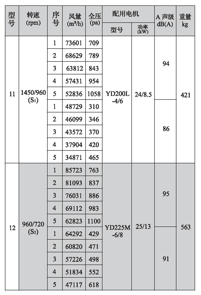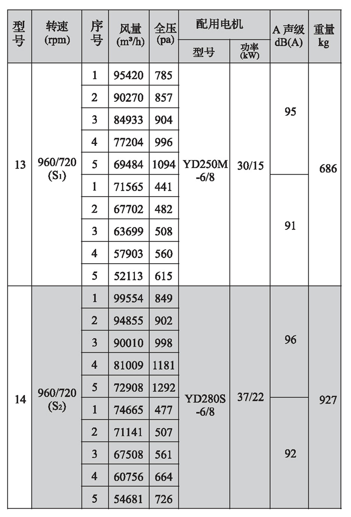 SWF-II系列混流式風(fēng)機性能參數(shù)(2)