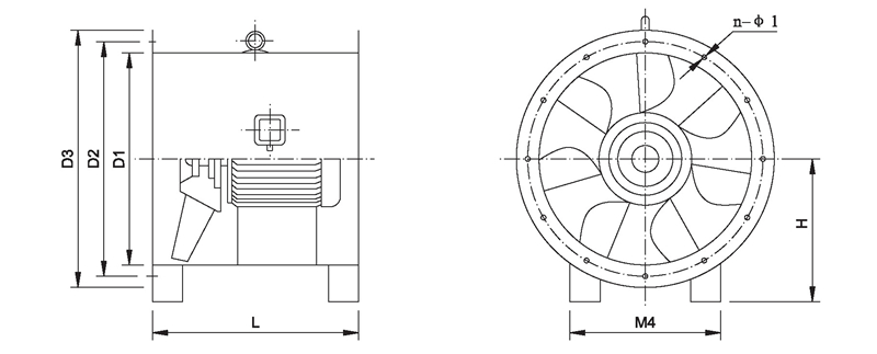 三、SWF-I系列混流式風(fēng)機外形及安裝尺寸表