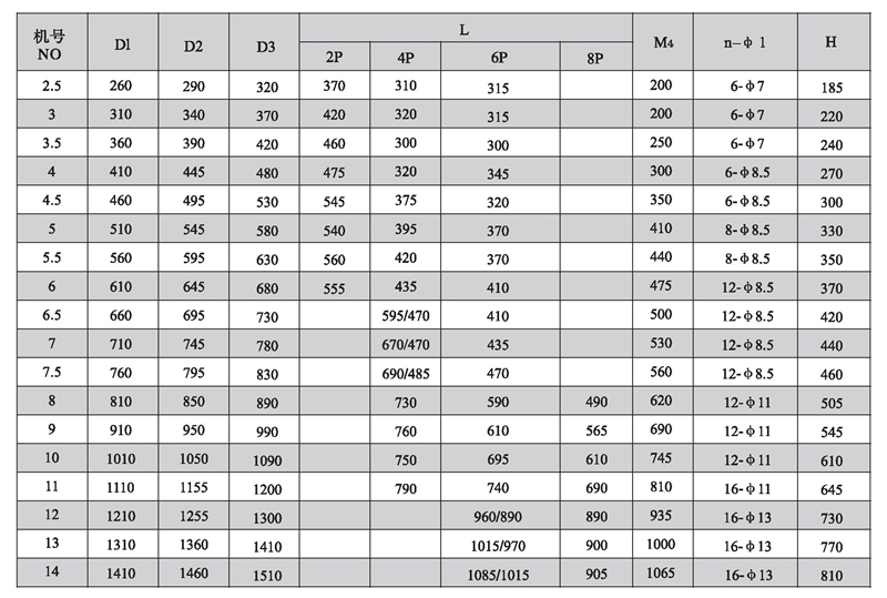 四、SWF-1I系列混流式風(fēng)機安裝尺寸表