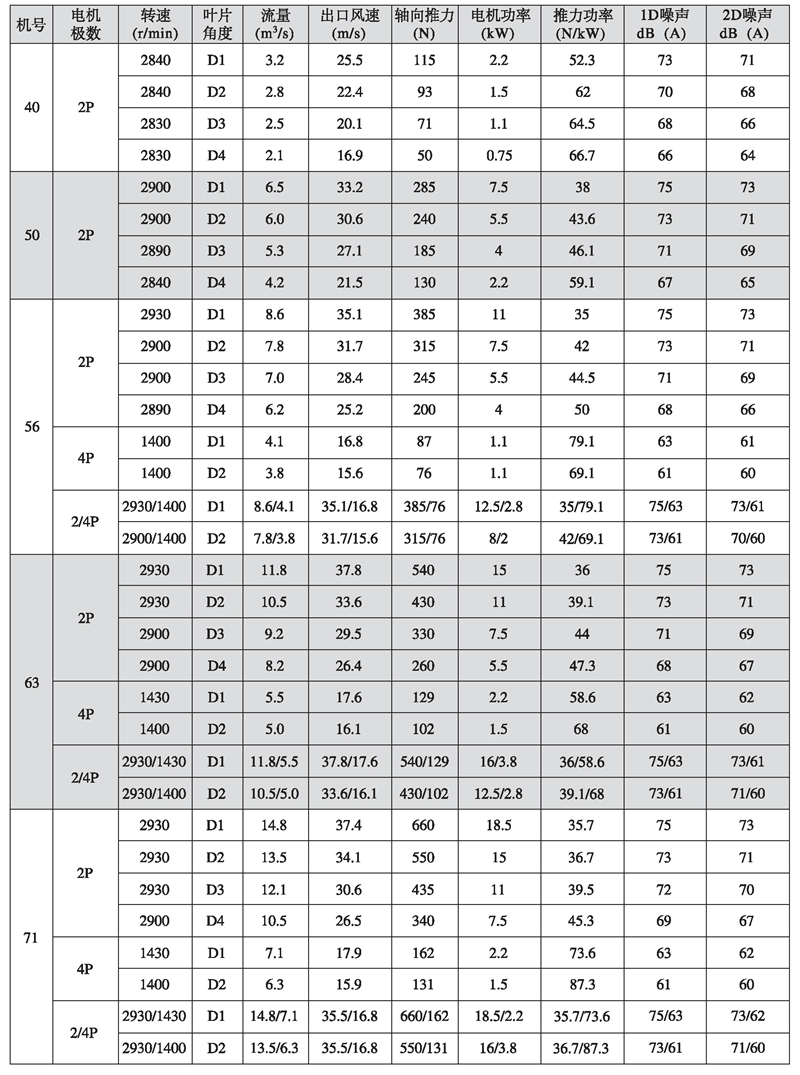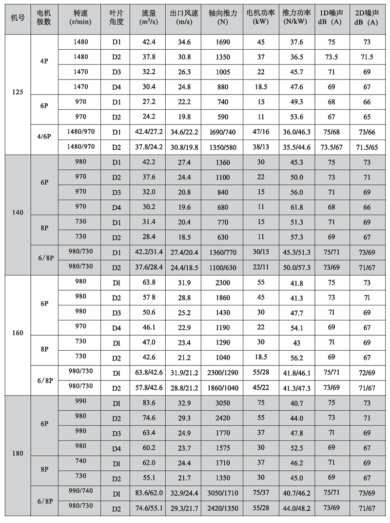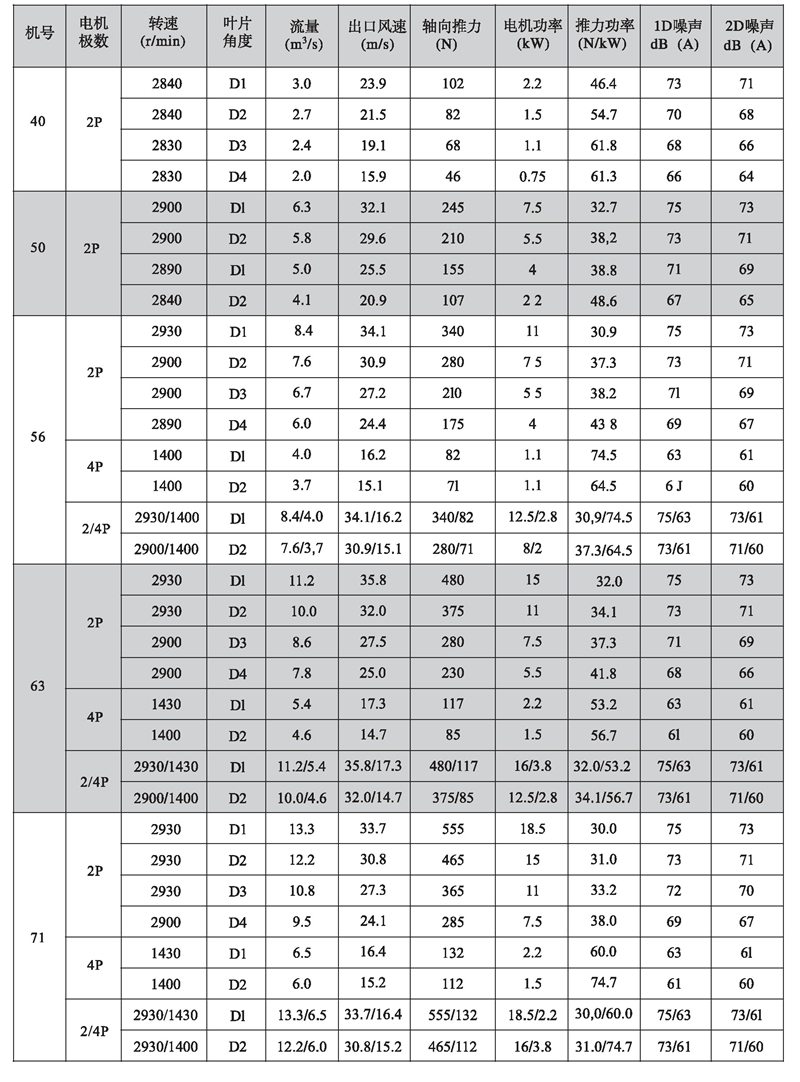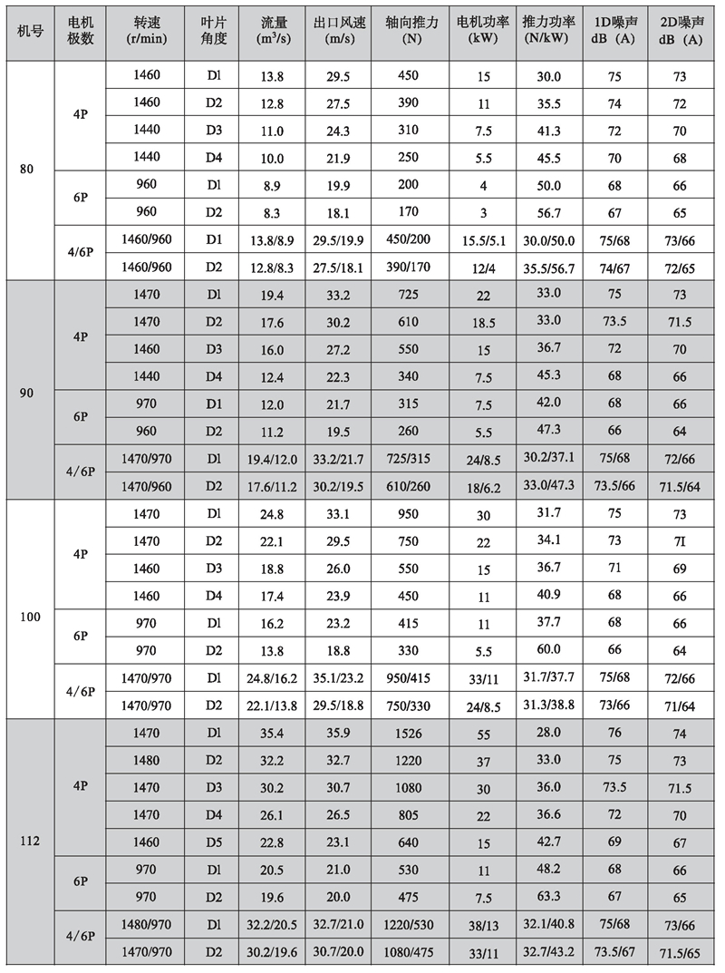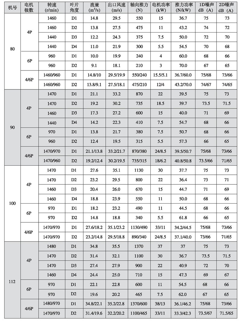 五、K型系列隧道射流風(fēng)機性能參數(shù)表