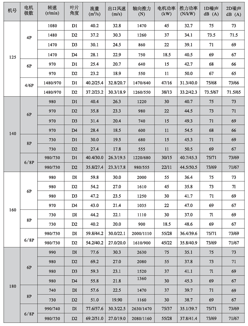 K型系列隧道射流風(fēng)機性能參數(shù)表(1)