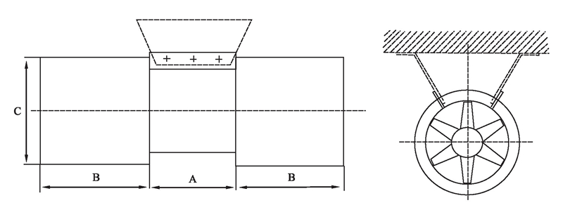 射流風(fēng)機主要用于公路及鐵路隧道的縱向通風(fēng)系統(tǒng)中,風(fēng)機一般懸掛在隧道頂部或兩側(cè),不占用交通而積,不需另外修建風(fēng)道。土建造價低,是一種很經(jīng)濟的通風(fēng)方式。