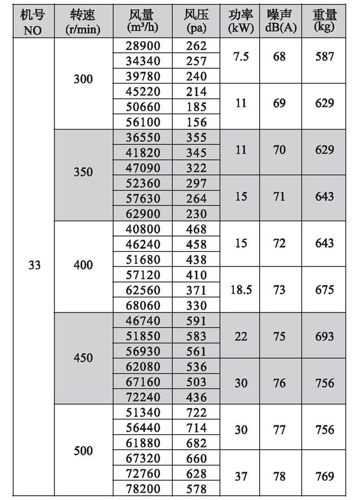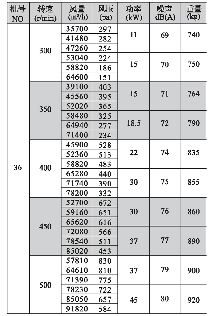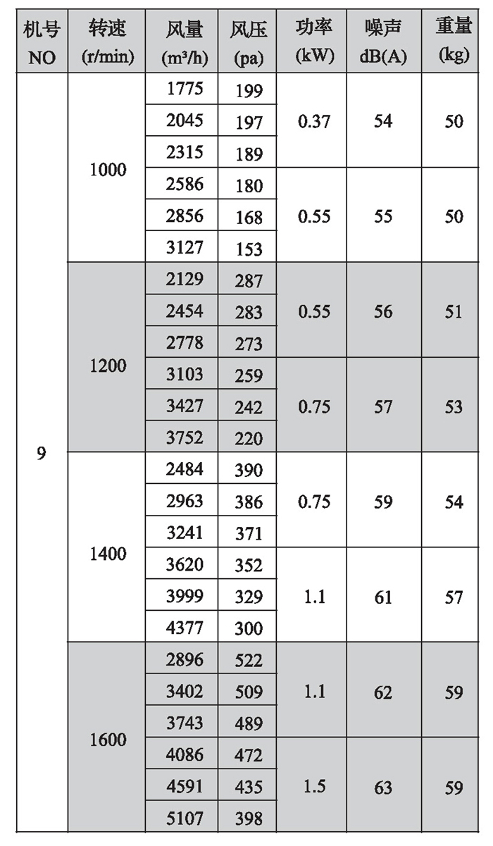 2.機號NO為葉輪直徑英寸數,如電機放在風機上面,A型高度須補加電機高度,寬度須補加皮帶罩寬度;如電機放在風機側面,A型寬度須補加電機長度。
